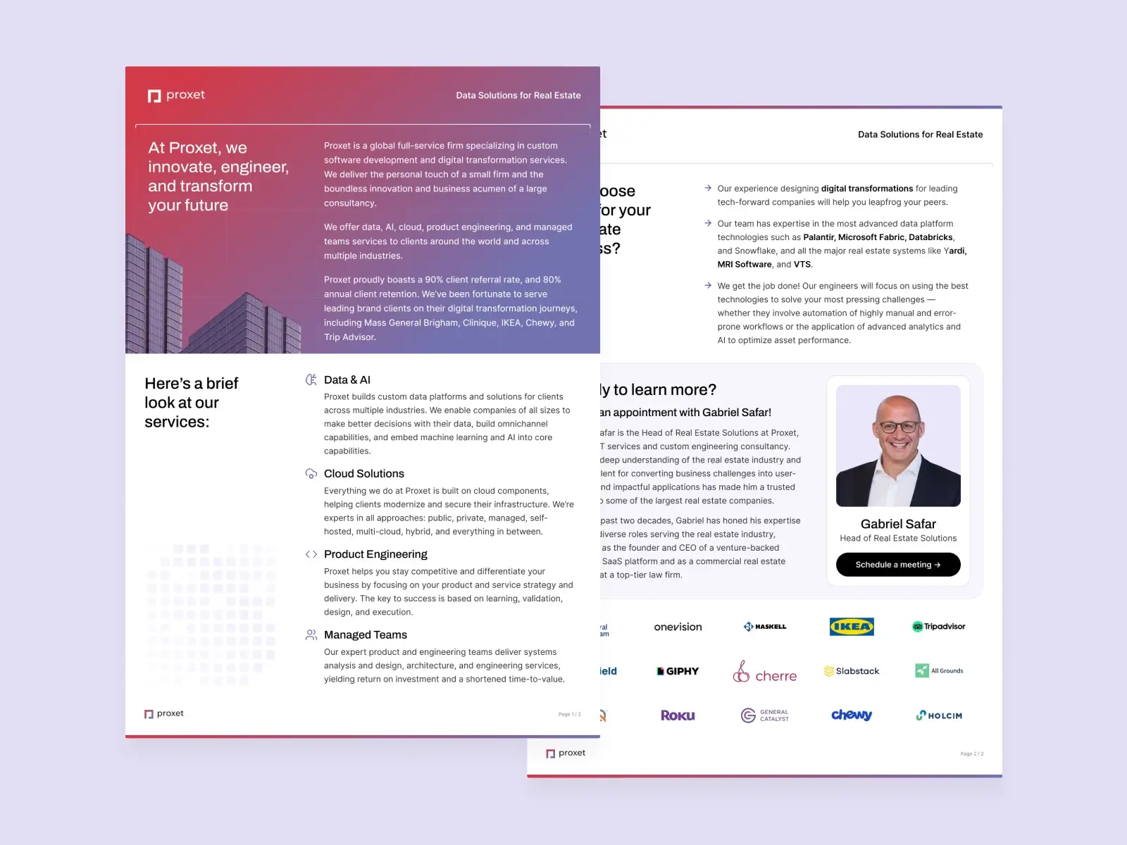 Proxet helps real estate firms connect their data, automate manual workflows, and apply AI to drive smarter decisions across the full asset lifecycle.