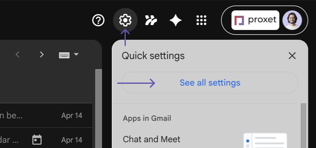 3. Go to Gmail, and then - Settings > See All Settings.